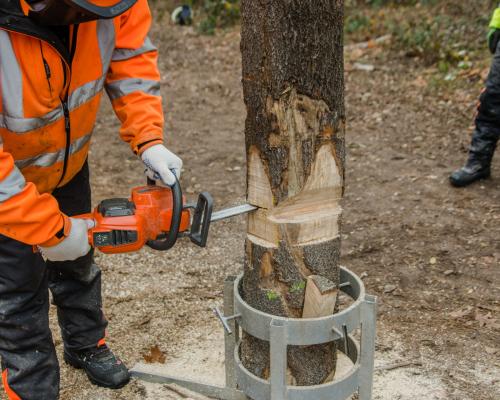 - Erlernen des Umgangs mit der Motorsäge und von Fälltechniken in der Hubarbeitsbühne